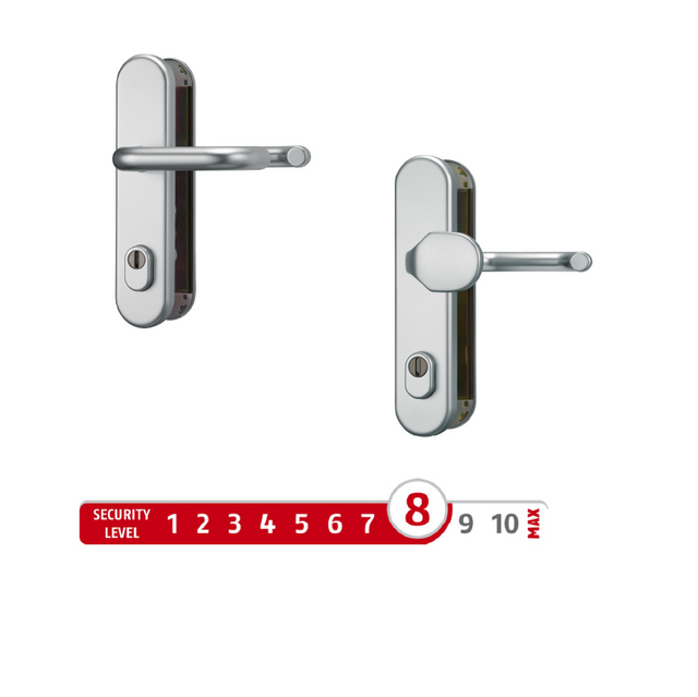 Unzureichend gesicherte Türen machen Ihr Zuhause zu einem leichten Ziel für Einbrecher. Häufige Sicherheitslücke: Türzylinder, die zu weit herausstehen und einfach abgeschraubt werden können. Sichern Sie Ihre Türen mit einem zuverlässigen Schutzbeschlag. Mit diesem Beschlag machen Sie Ihre Stumpf- und Falztüren sicherer. Er besteht aus mehreren Stahlschichten und hält einer Zuglast von 2,5 Tonnen stand. Er zeichnet sich besonders gegen das Abziehen des Zylinders aus. Extra lange Stahlnocken mit vergüteten Spezialschrauben M6 erhöhen zudem den Schlagschutz. Eine Stahleinlage im äußeren Griff verhindert zuverlässig Abreißen. Ein sicheres Gesamtpaket mit VdS- und DIN-Zertifikat für Hauseingangstüren (HLZS) mit einer Stärke von 52 bis 72 Millimetern und Wohnungseingangstüren (KLZS) mit einer Stärke von 37 bis 47 Millimetern.